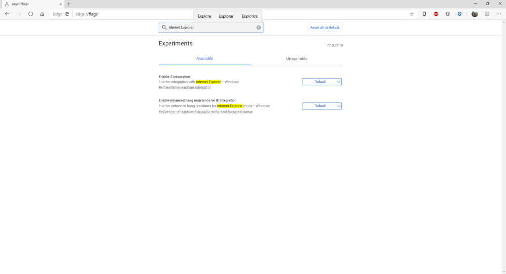 En primer lugar debemos estar en la versión 77.0.200.0 o superior y entrar en la página edge://flags. A continuación buscamos Internet Explorer y elegimos la opción “Enable IE Integration flag”, la activamos y reiniciamos el navegador.