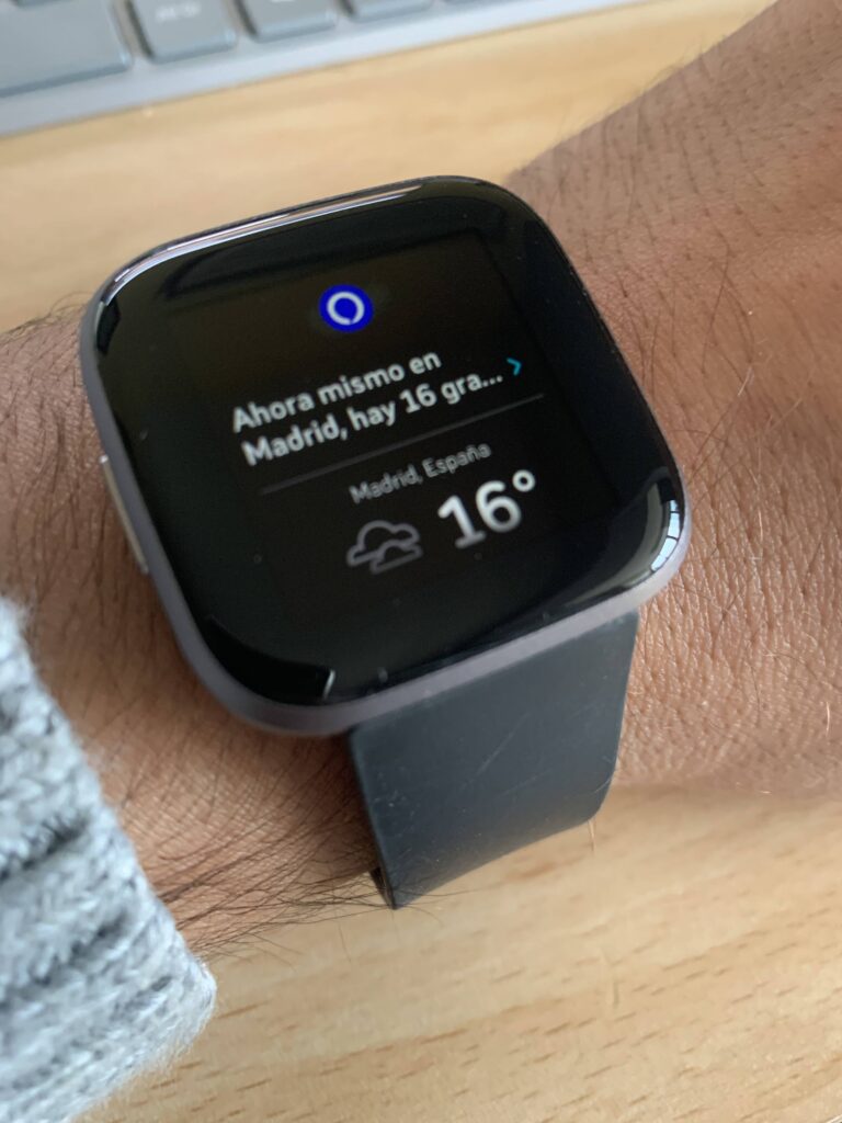 Podemos establecer temporizadores y alarmas o preguntarle cualquier cosa, incluso las calorías de un aguacate o cualquier comida. Ahora Fitbit es todavía más Fit. Además, se integra con los altavoces Echo y permite interactuar con estos.