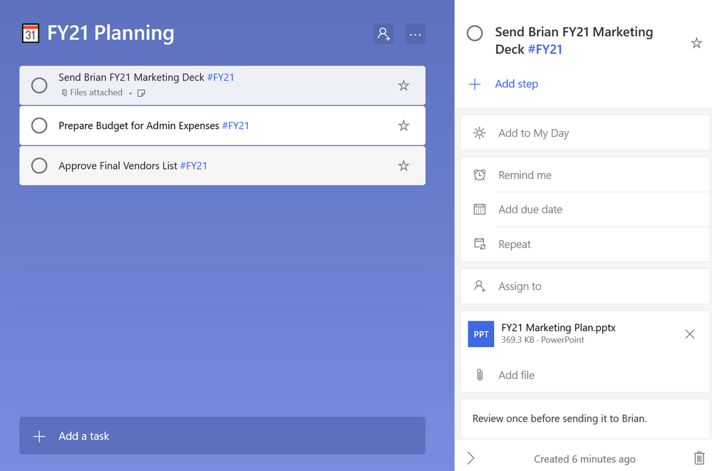A veces puede ocurrir que hayamos apuntado una tarea pero no sepamos a ciencia cierta su contexto o a qué nos queríamos referir, así que gracias a Microsoft To Do podemos añadir hashtags, notas o archivos a las tareas en caso de que lo veamos necesario.