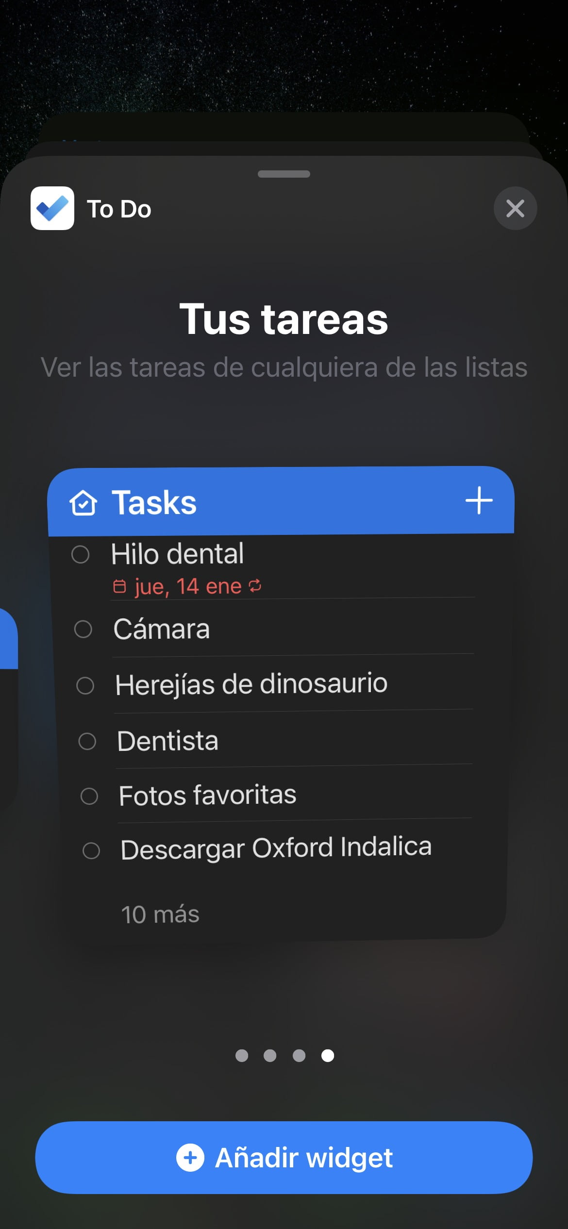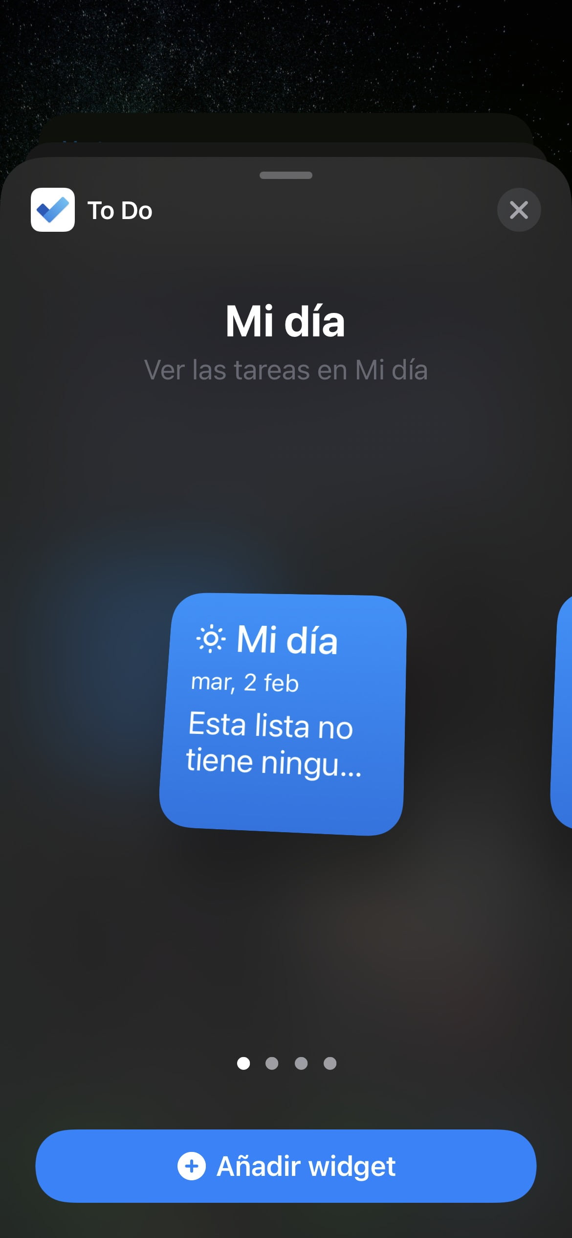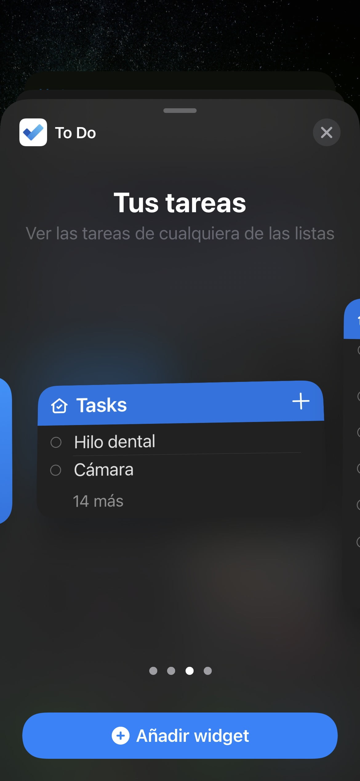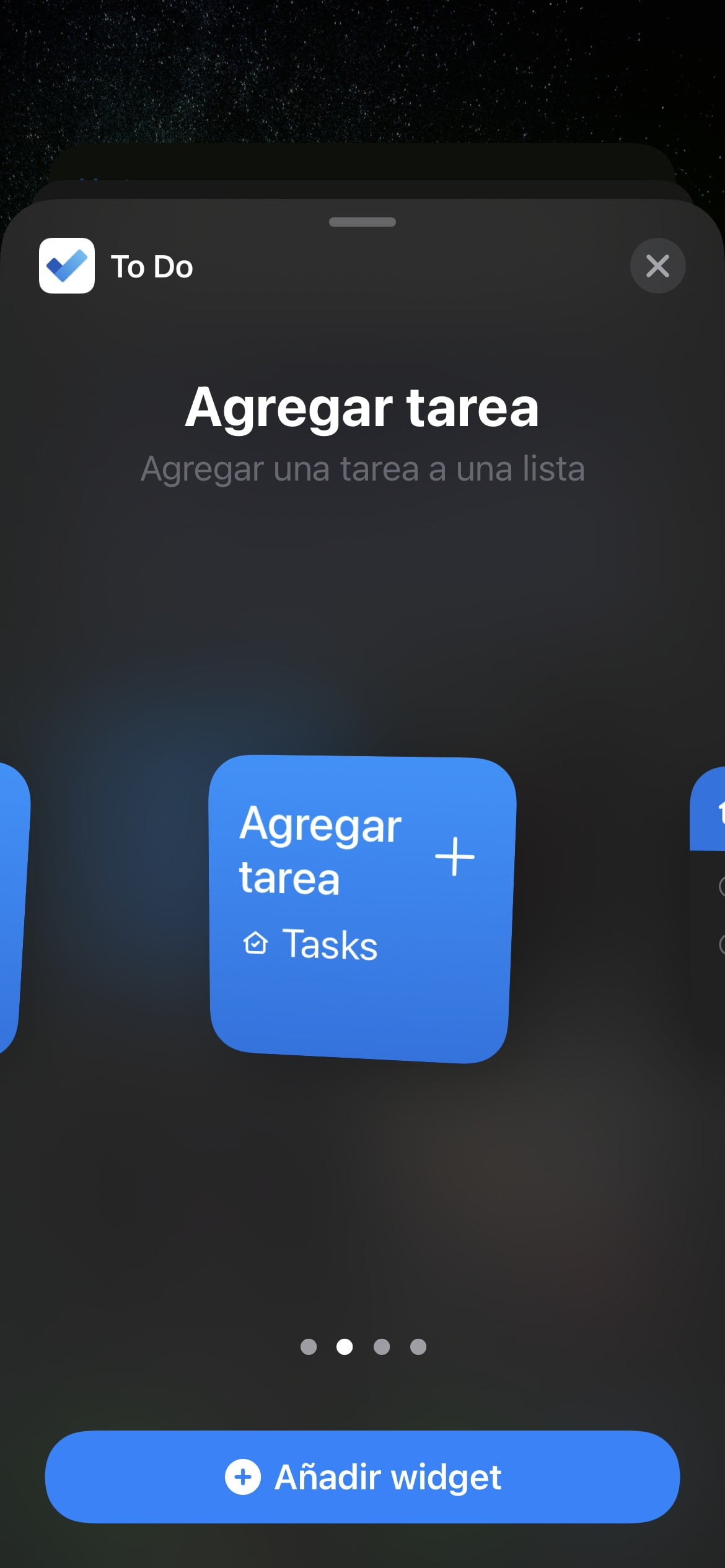 Como podéis comprobar, la espera parece haber sido más que satisfactoria, ya que la aplicación ofrece una gran variedad de widgets. Podremos tanto optar por widgets cuadrados donde se mostrarán las tareas de Mi día, otro con el que poder agregar nuevas a la lista de tareas, un widget horizontal donde se mostrarán nuestras Tareas, y un gran widget cuadrado con el que poder ver todas nuestras Tareas.