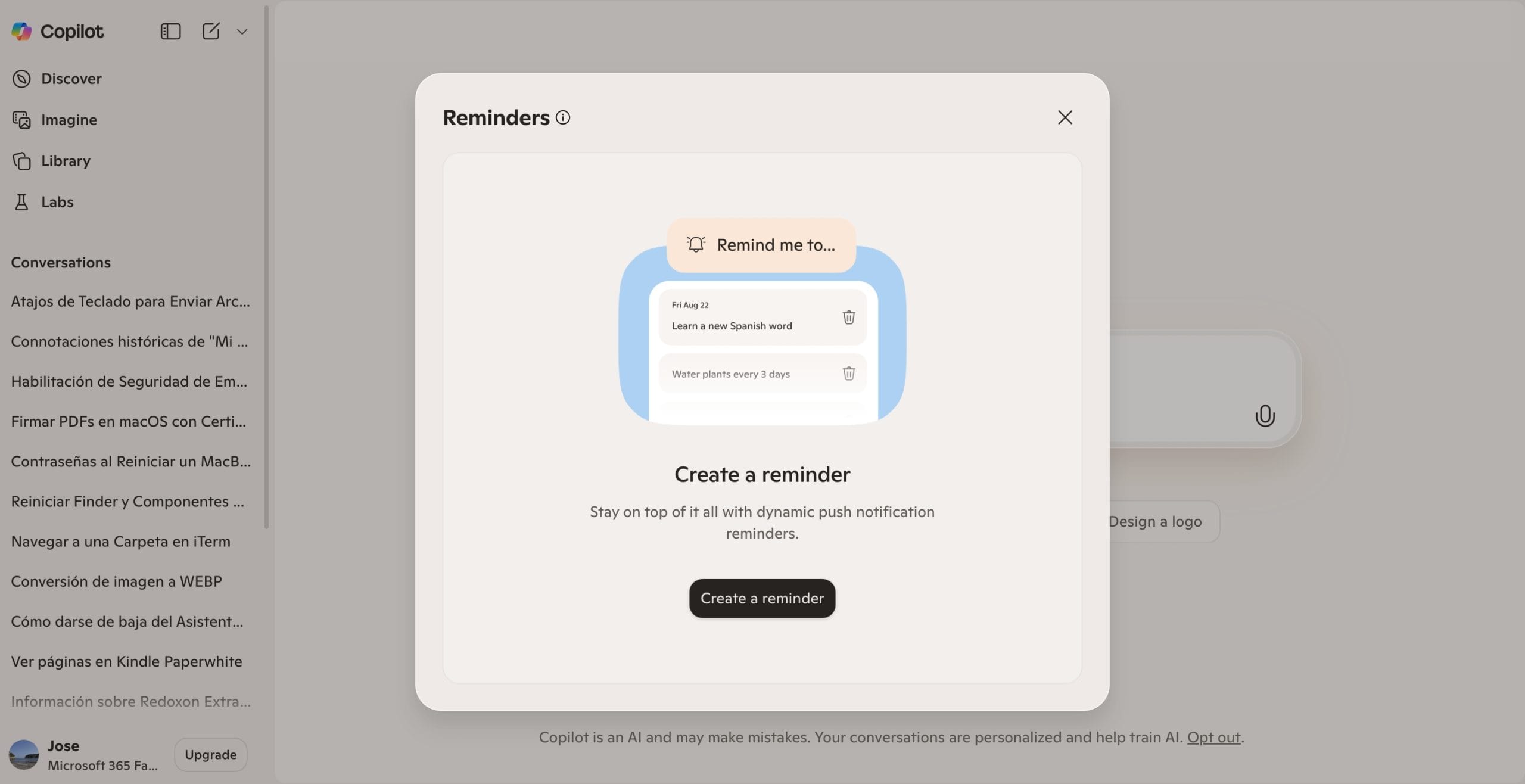 Cómo crear recordatorios en Copilot (web y Windows 11)