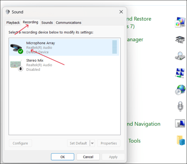 Paso 5. Para configurar el micrófono como dispositivo de entrada de audio predeterminado, ve a Panel de control > Sonidos > Grabación y márcalo como predeterminado. Ahora, modifica la configuración en la consola Xbox y selecciona Clownfish como el micrófono predeterminado.