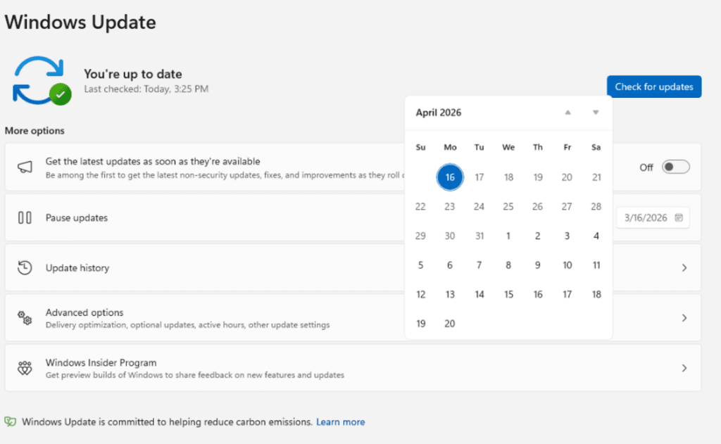 Windows Update también mejora la pausa de actualizaciones. La nueva experiencia permitirá elegir en un calendario el día concreto hasta el que queremos detenerlas, con un límite de hasta 35 días. Esto puede ser útil en viajes, semanas de trabajo intenso, exámenes o cualquier periodo en el que no queramos arriesgarnos a una interrupción.
